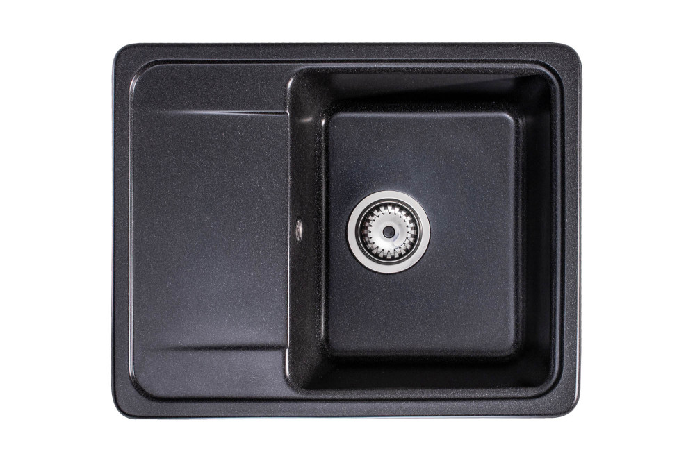 - žulový drez z granitu v čiernej metalickej farbe s krátkym odkvapom