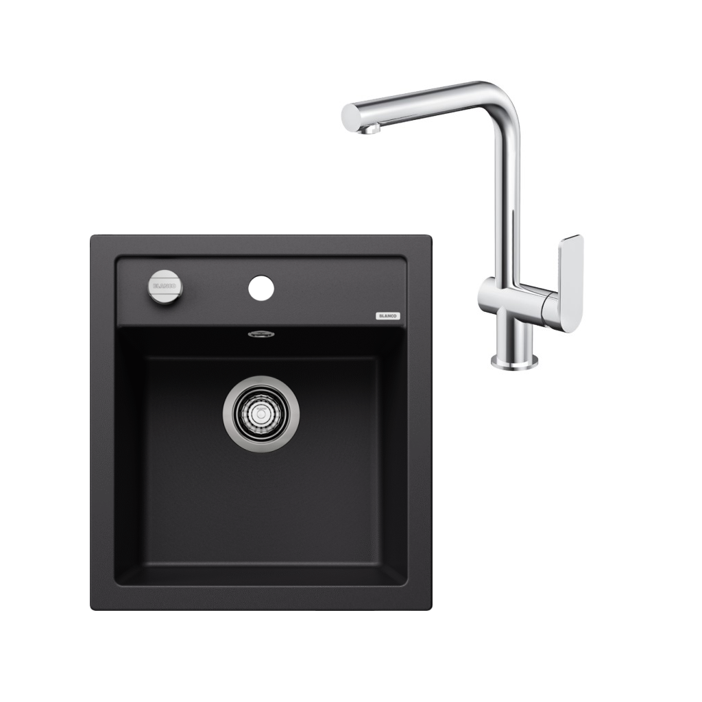 SET081 - Gránitový drez Blanco Dalago 45 čierna + Kuchynská batéria Rosan S2 238201 chróm