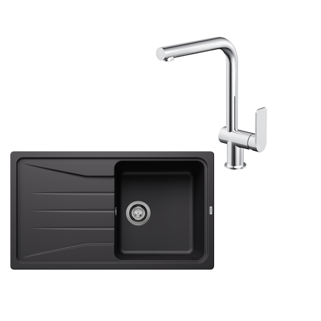 SET116 - Gránitový drez Blanco Sona 5 S čierna + Kuchynská batéria Rosan S2 238201 chróm