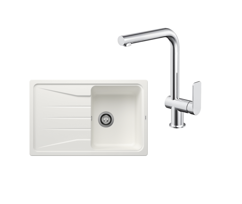 SET166 - Gránitový drez Blanco Sona 45 S biela + Kuchynská batéria Rosan S2 238201 chróm