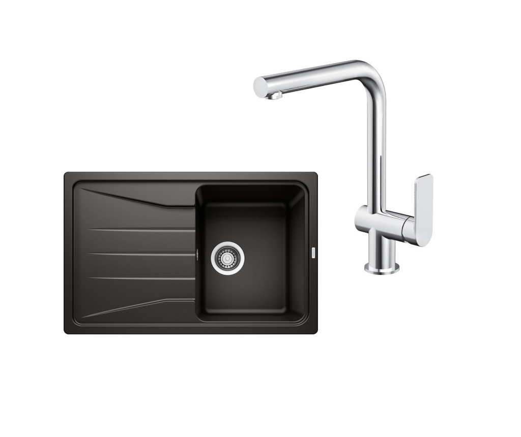 SET171 - Gránitový drez Blanco Sona 45 S čierna + Kuchynská batéria Rosan S2 238201 chróm