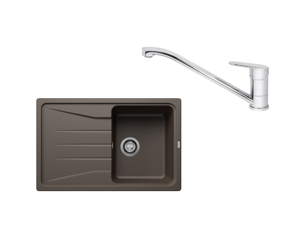 SET183 - Gránitový drez Blanco Sona 45 S káva + Kuchynská batéria Rosan King JA381001 chróm