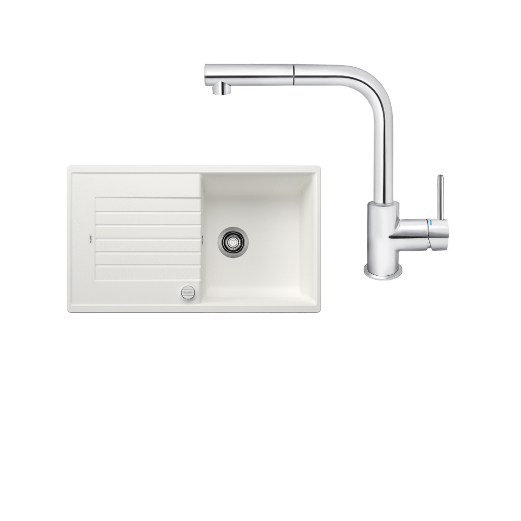 SET230 - Gránitový drez Blanco Zia 5 S biela + Kuchynská batéria Rosan Zerro JZ38601 chróm