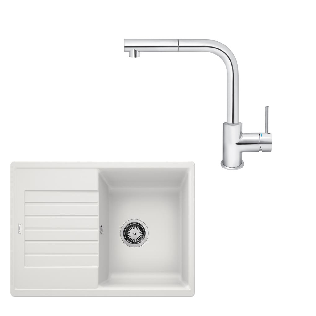 SET280 - Gránitový drez Blanco Zia 45 S biela + Kuchynská batéria Rosan Zerro JZ38601 chróm