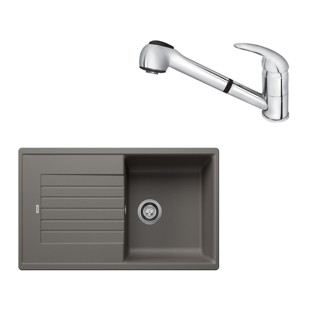 SET397 - Gránitový drez Blanco Zia 5 S sivá vulkán + Kuchynská batéria Rosan King J385001 chróm