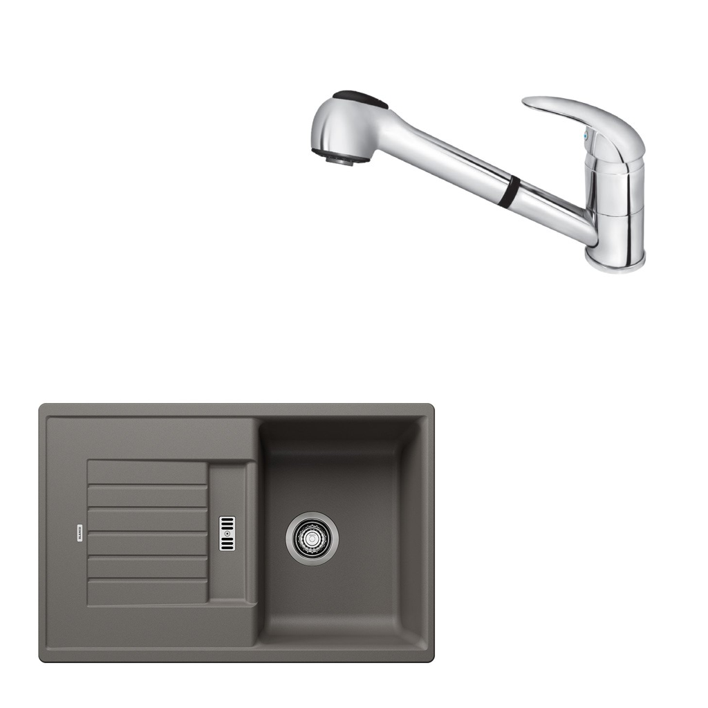 SET417 - Gránitový drez Blanco Zia 45 S sivá vulkán + Kuchynská batéria Rosan King J385001 chróm