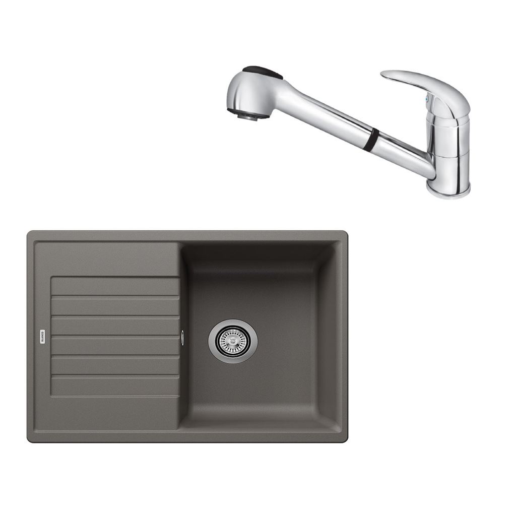 SET427 - Gránitový drez Blanco Zia 45 S Compact sivá vulkán + Kuchynská batéria Rosan King J385001 chróm