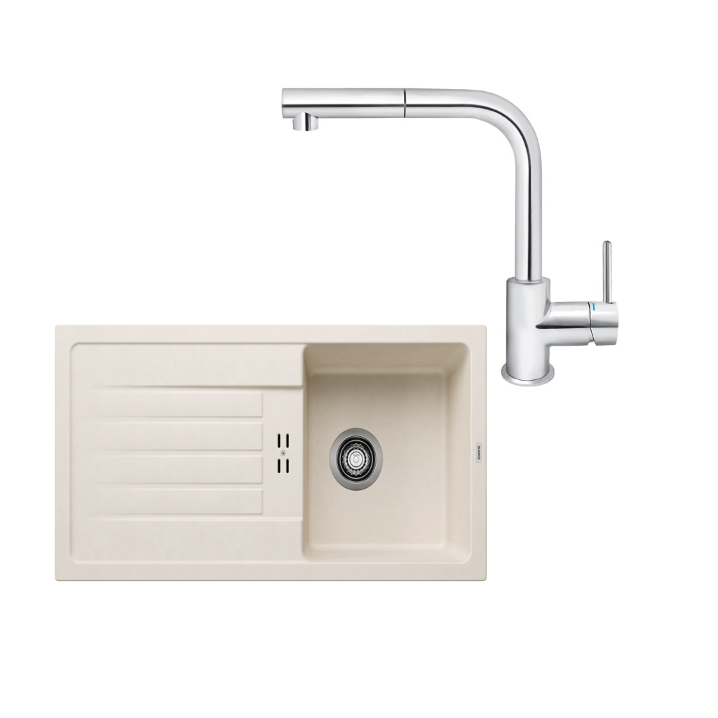 SET560 - Gránitový drez Blanco Favum 45 S biela soft + Kuchynská batéria Rosan Zerro JZ38601 chróm